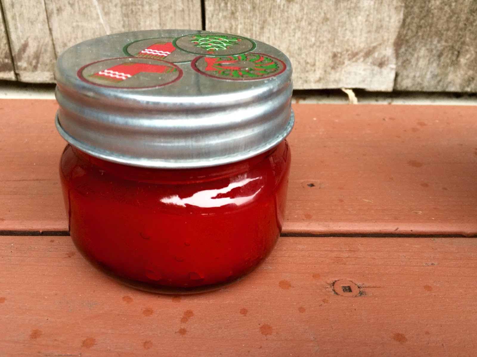 Julie wrote about the delightful Sugar & Salt Scrub she made with a group of friends last year. I saw cute little red jars in the Dollar Spot at Target and thought it would be fun to let the kids make a “science experiment” that turned into a gift.