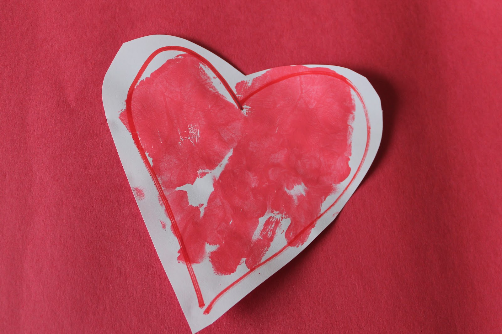 3.  Heart Reflection Valentines:  For these Valentines, I cut out big hearts from construction paper.  Aiden, my four year old, painted on only 1/2 of the heart.