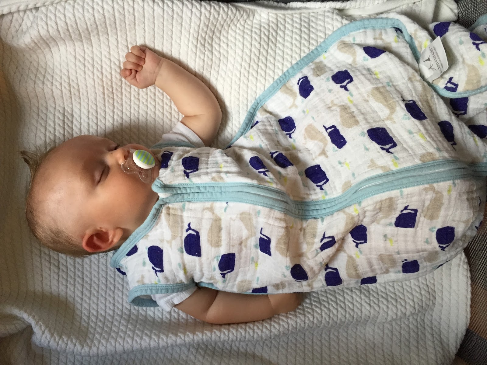 6. Aden + Anais: We seem to use Aden + Anais all day in our house lately – blankets, bibs, at bath time etc. This summer I tried their clothing for the first time and their breathable sleeping bag. Both have been great for keeping Miles comfy and cool. The clothes are made in the same soft, breathable fabric as the swaddles and come in many of the same patterns. The sleeping bag has been wonderful. Miles still is cozy at night, but not too hot.