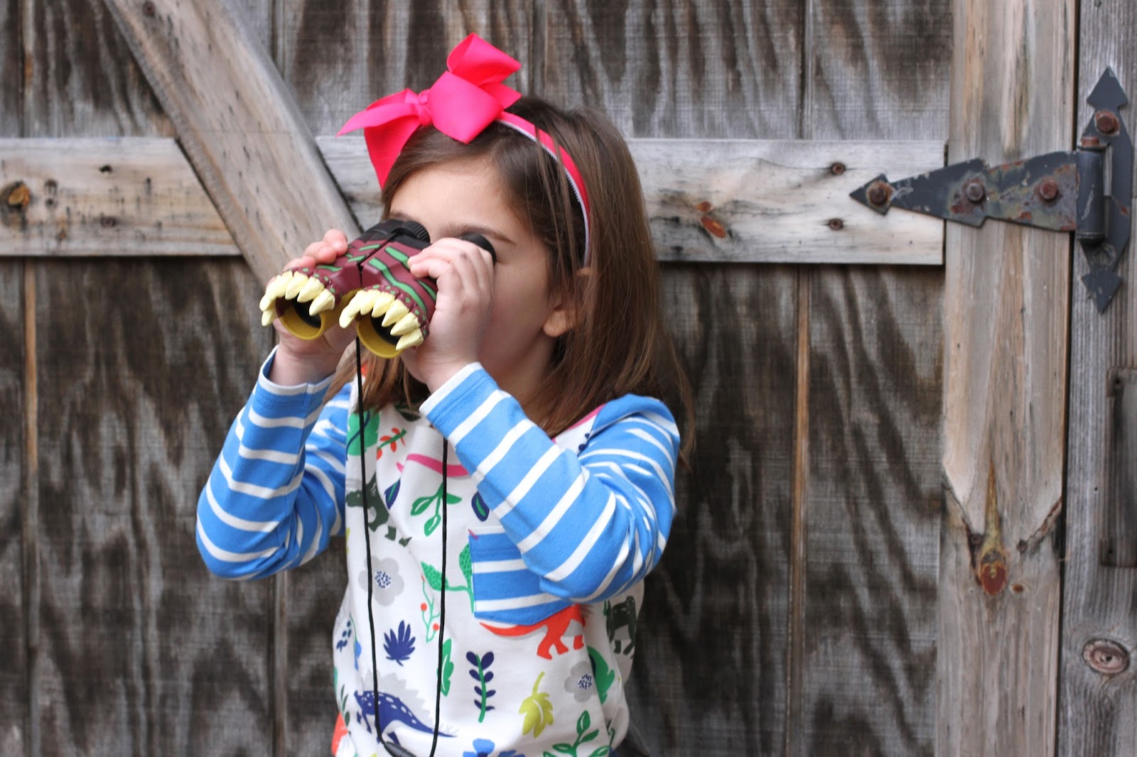We have a thing for dinosaurs. Maggie started liking dinosaurs when she was about 3. We read a book about them and then she spotted a red one at the store and the rest is history.
