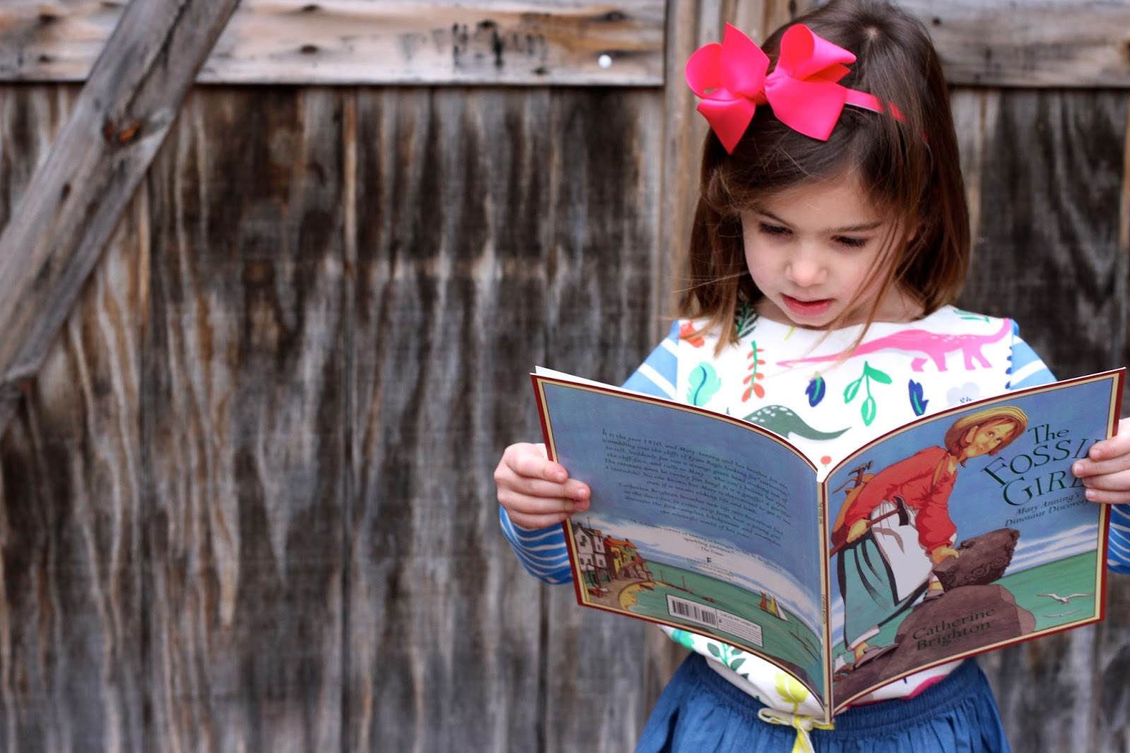 Like I said, the pink sparkle dino shirt Maggie made was the first and only “girl” dinosaur item we had. No matter how hard I looked, I couldn’t find dinosaur items geared towards little girls. The girls had a few boy dinosaur shirts they’d pair with skirts, but they always wanted dino dresses. We couldn’t fin any…. until now. Mini Boden’s new Florasaurus print was inspired by Victorian fossil hunter Mary Anning and is one of the1st dino prints for girls! After I heard about the print and the woman who inspired the line, I looked into the story of Mary Anning and it’s amazing.