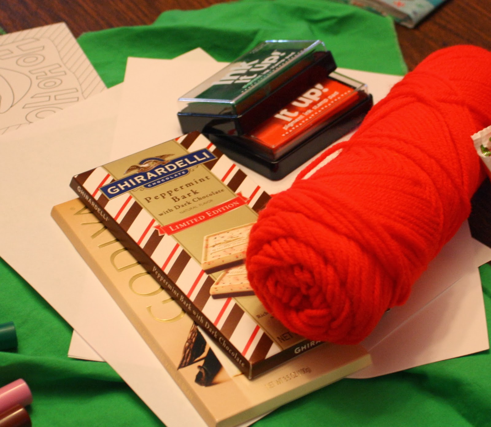 Yarn or ribbon (if you don’t have either you can also just draw on a scarf)