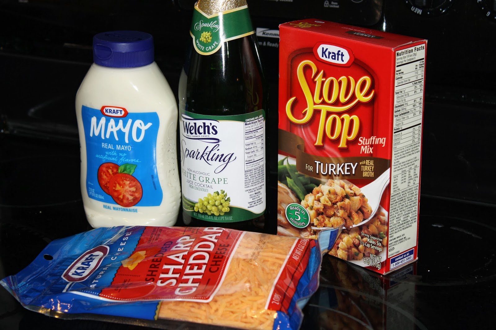 Mix all of the ingredients in a bowl except the Stove Top & half of the Kraft cheese. Spread mixture in an oven safe casserole dish. Top with the Stove Top & the remainder of the Kraft cheese.