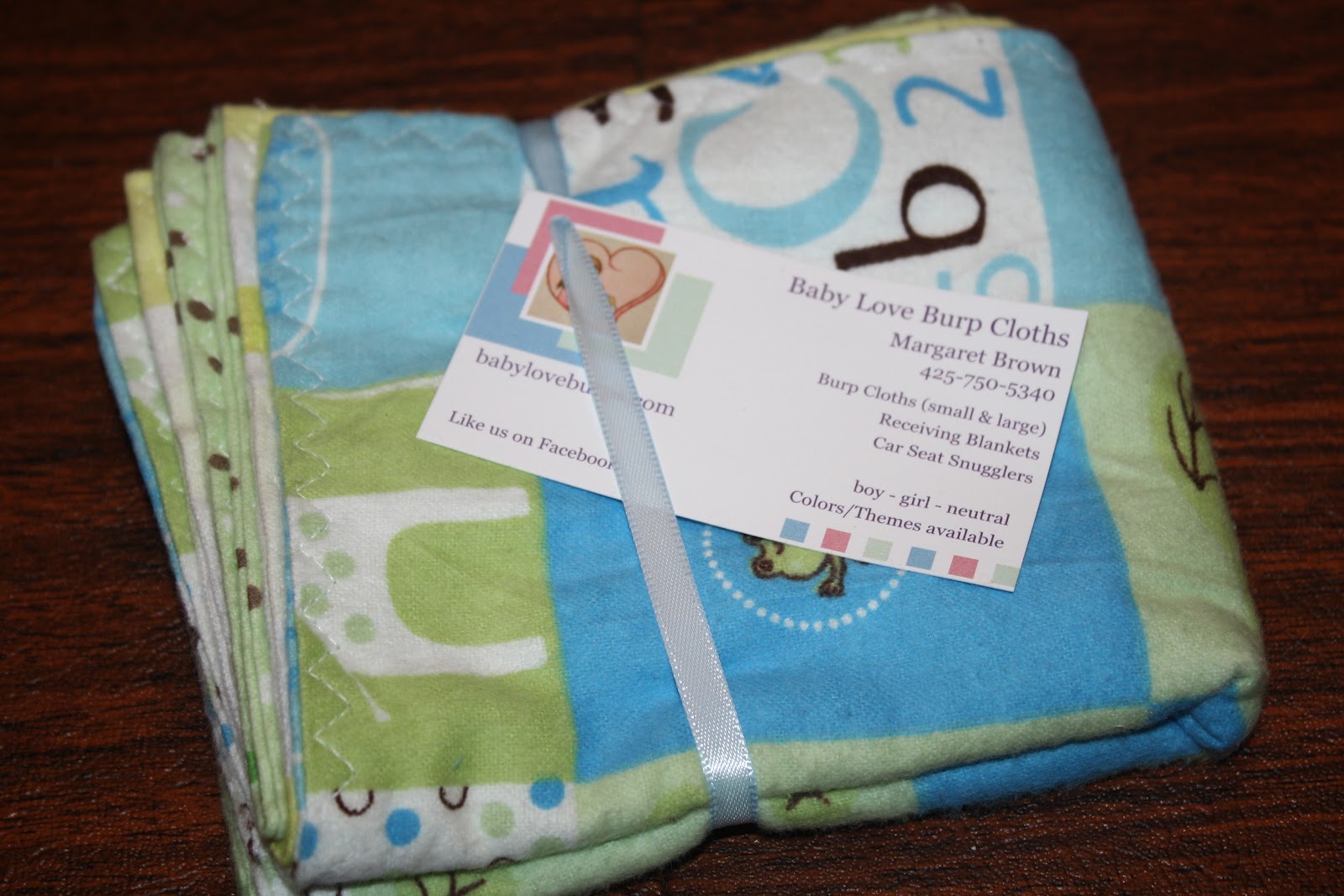 Baby Love Burp Cloths creates adorable stroller blankets, burp cloths, and more!  The stroller blankets are SOO soft—I think my 3 1/2 year old is jealous of what his little brother snuggles with:)