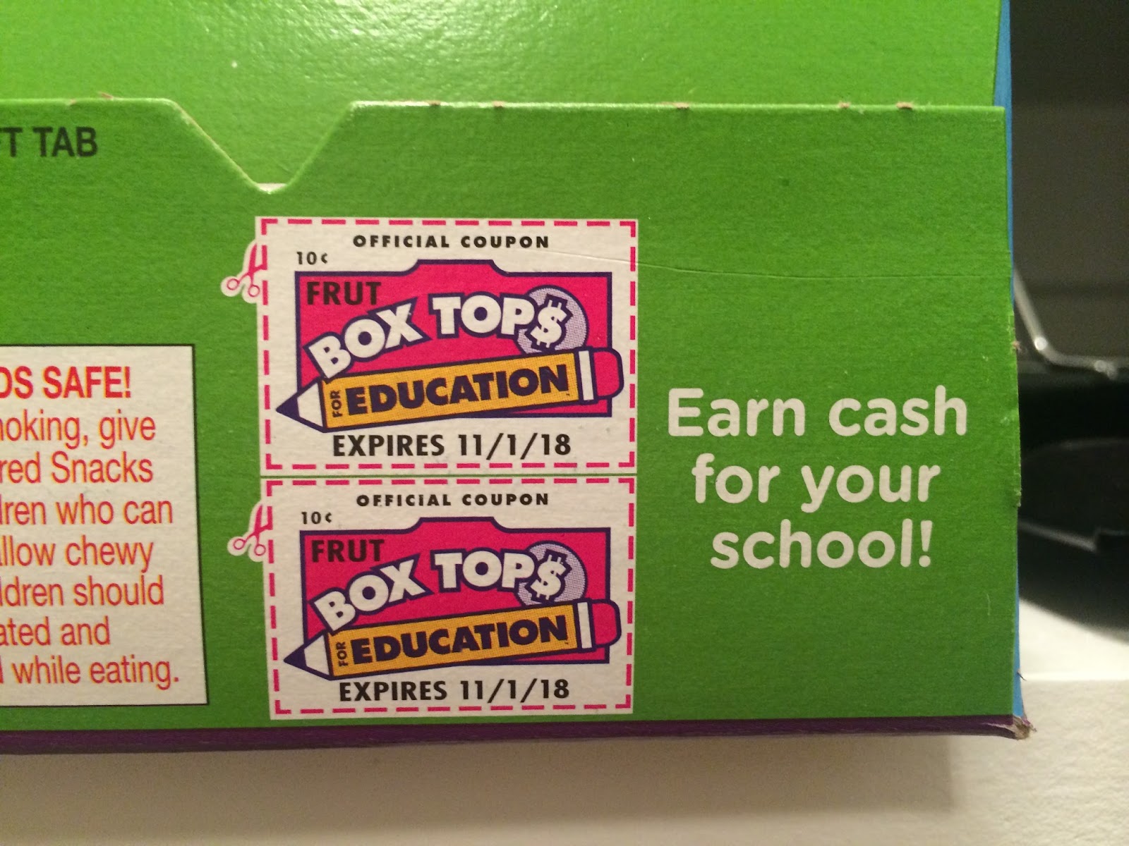 Box Tops are a great and easy way to give to your school.  Each Box Top is worth $0.10 for your child’s school.  Over 80,000 K-8 schools participate, making Box Tops one of America’s largest school earnings loyalty program.  Box Tops of Education has contributed over $525 million to participating schools since the launch of the program in 1996.  Each participating school can use Box Tops cash to buy whatever they need.
