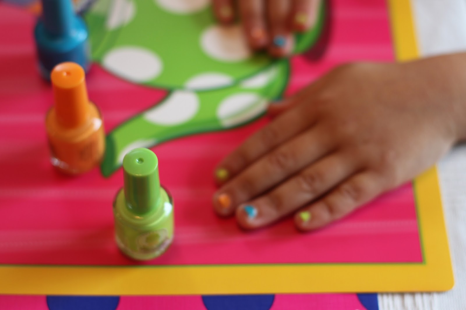 After we made the hats, we painted the girls nails while the hats were drying. We used the Cupcake Scented Nail Polish set from Birthday Express. It smelled festive and the colors matched the party colors.