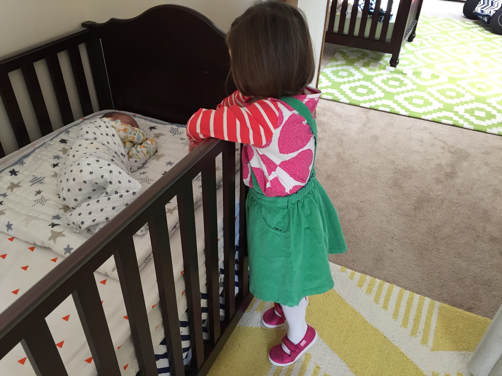 Now we have 2 babies sleeping in the nursery. 2 weeks ago, we welcomed another baby boy to our family. While Miles isn’t sleeping in the nursery at night, he seems to like napping in there. His big sisters love that the crib is up high and at the perfect height to “sing him lullabies”. I love catching their sweet moments with their baby brother on the video monitor, especially their little voices singing to him.