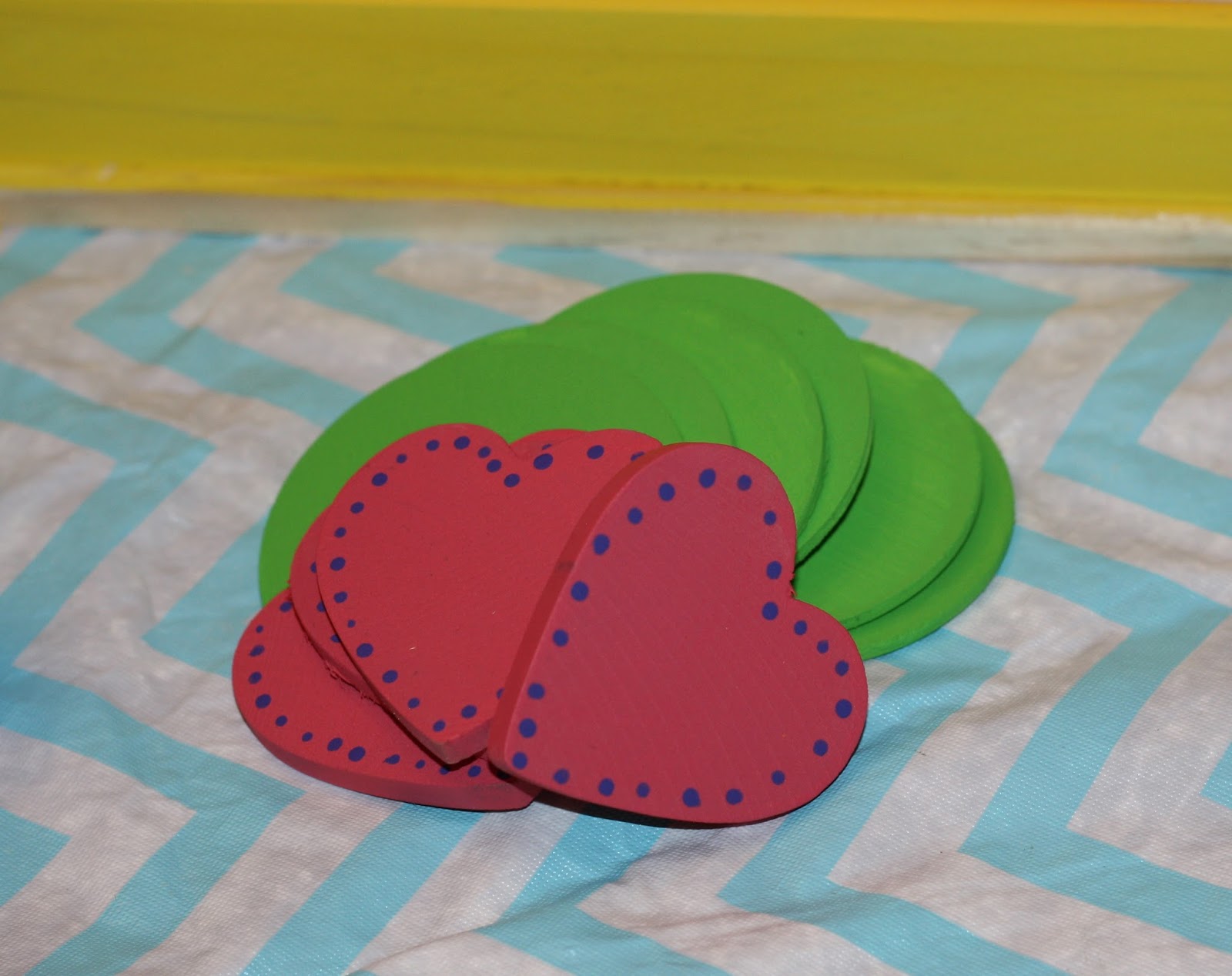 I got all of the supplies at a craft store. Basically I walked around the wood aisle & picked out items that could work for pretending to play “tea” or have a pretend picnic.