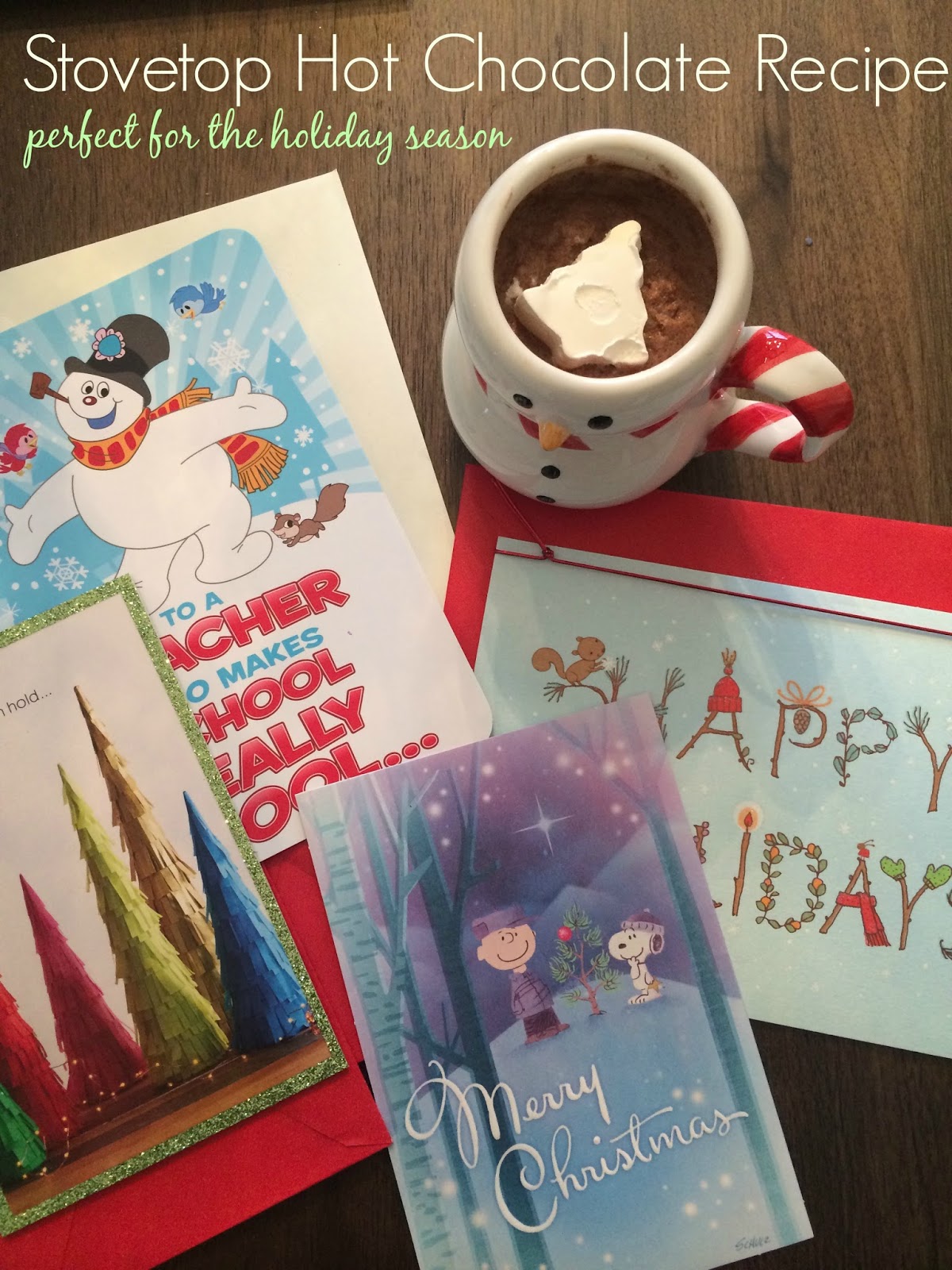 While the kids were busy writing sweet Christmas messages & signing the cards, I made my super easy & delicious homemade hot chocolate, a recipe passed down from my mother.  Today, I am going to share this easy recipe with you: