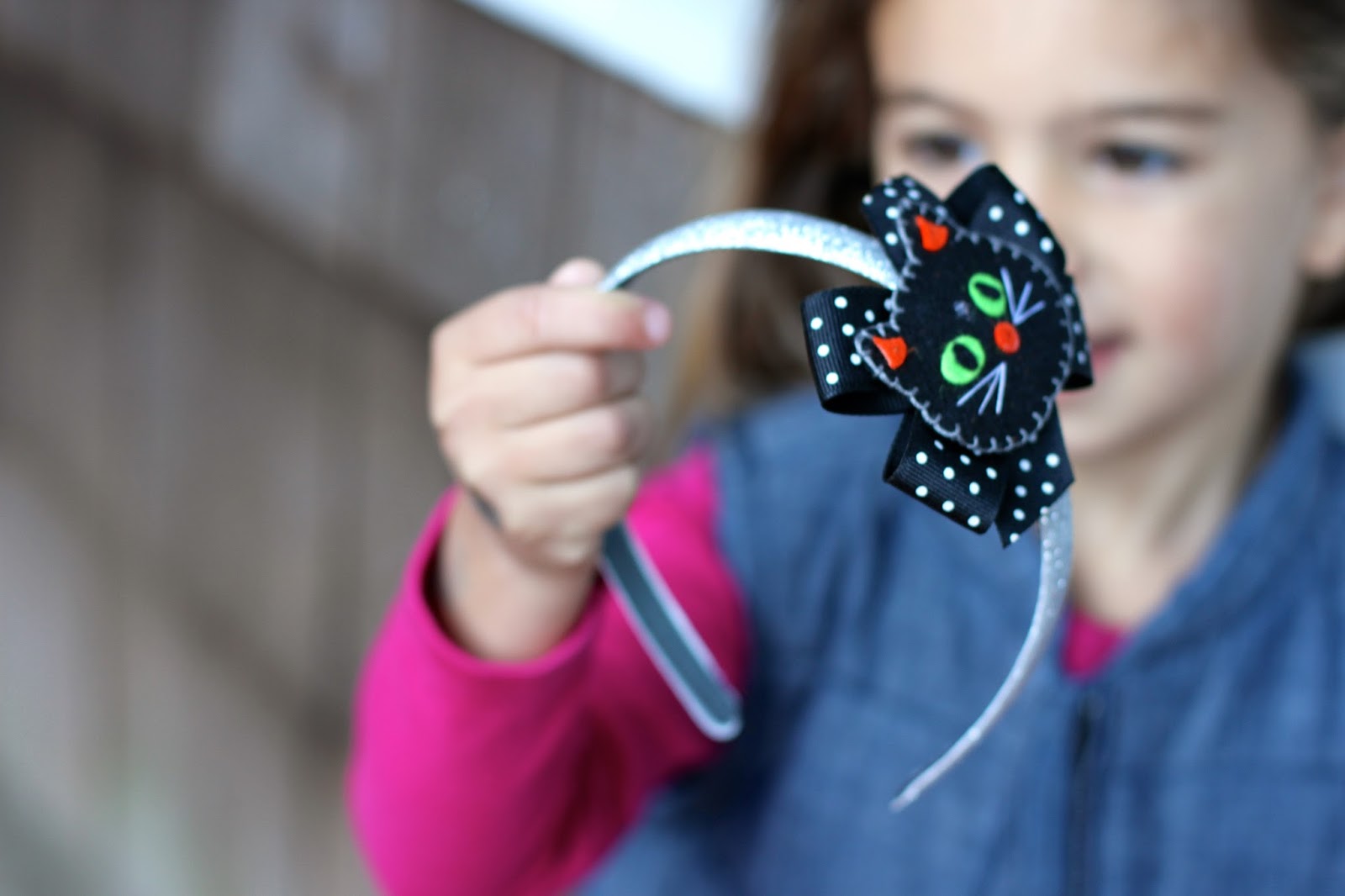 All I did was order some plain headbands from Amazon. Then I got an assortment of felt Halloween pieces and bows from an Etsy shop, Asec Inc. Those supplies plus some craft glue and the girls made their own hair accessories. They came out great and they were excited to help!