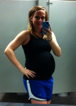 About a year after our wedding, my husband and I found out we were expecting a little bundle of joy! It turns out I ran my first half marathon with a baby on board and didn’t even know it! 🙂  I had just finally felt comfortable with my body.  I was loving running and was teaching circuit training 2-3 times a week. There was no way I was going to give that up now. I knew I needed to keep up my workouts in hopes to stay healthy for both me and the baby as well as hopefully have a quick and easy delivery and recovery (ha!)