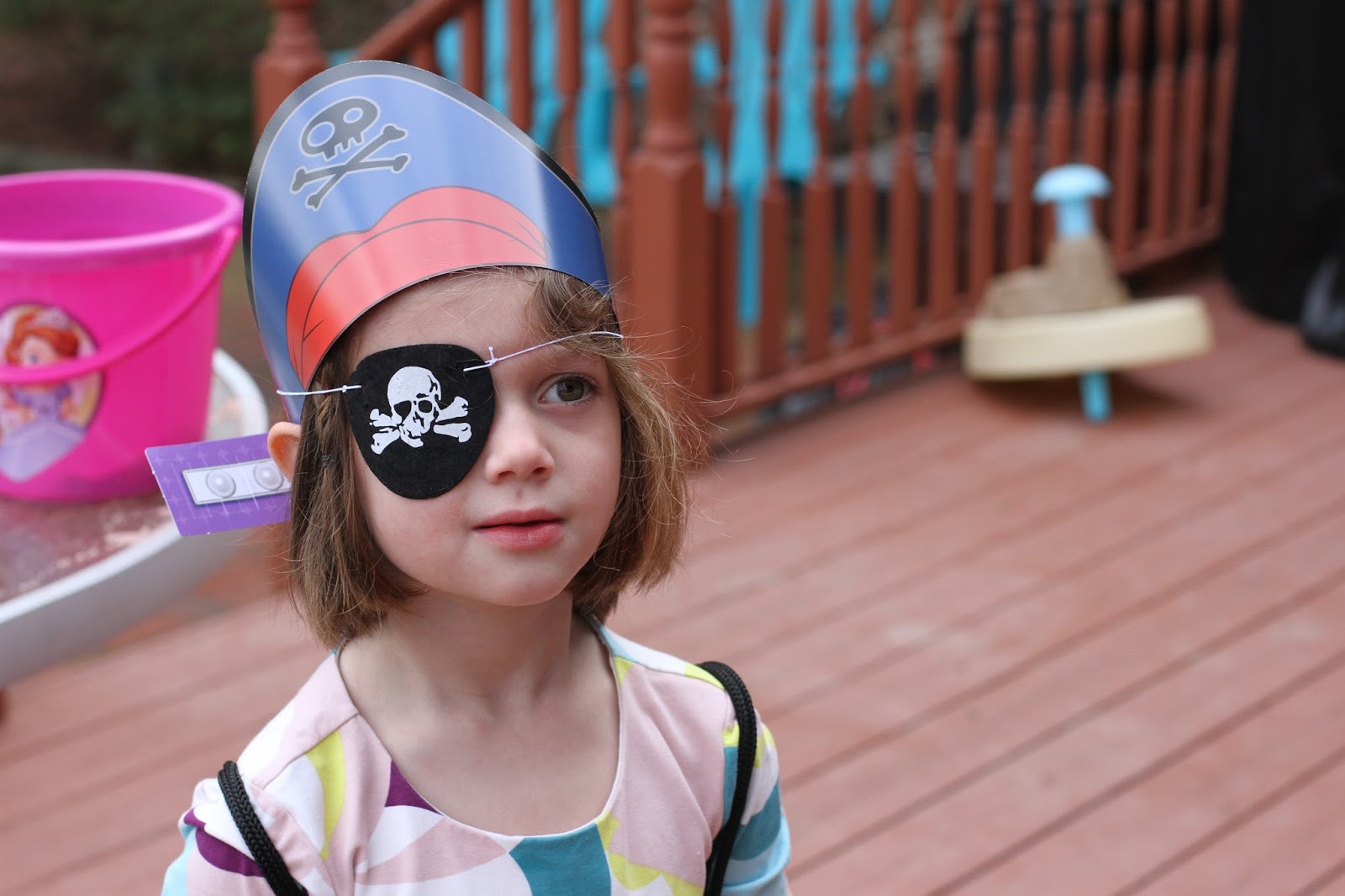 We had a few activities for Jake! First, we had a crocodile ring toss. I found this inflatable game on Amazon. When they completed this they earned an eye patch. Then, we hid gold coins all over the yard and when they collected 10 they got a pirate hat crown. After running around searching for the coins we stopped for a snack!