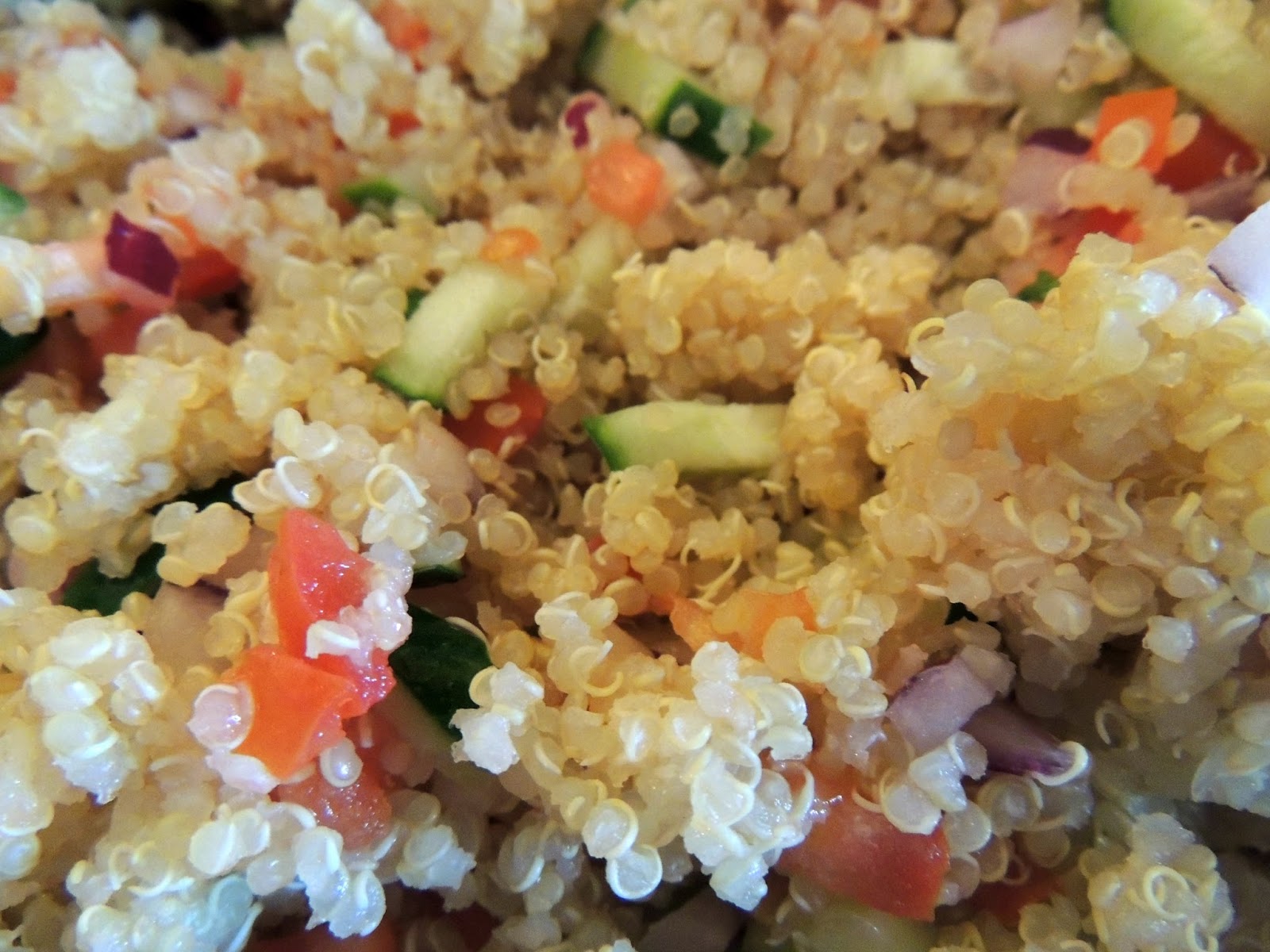 the quinoa. Pour the dressing overtop and gently fold until evenly