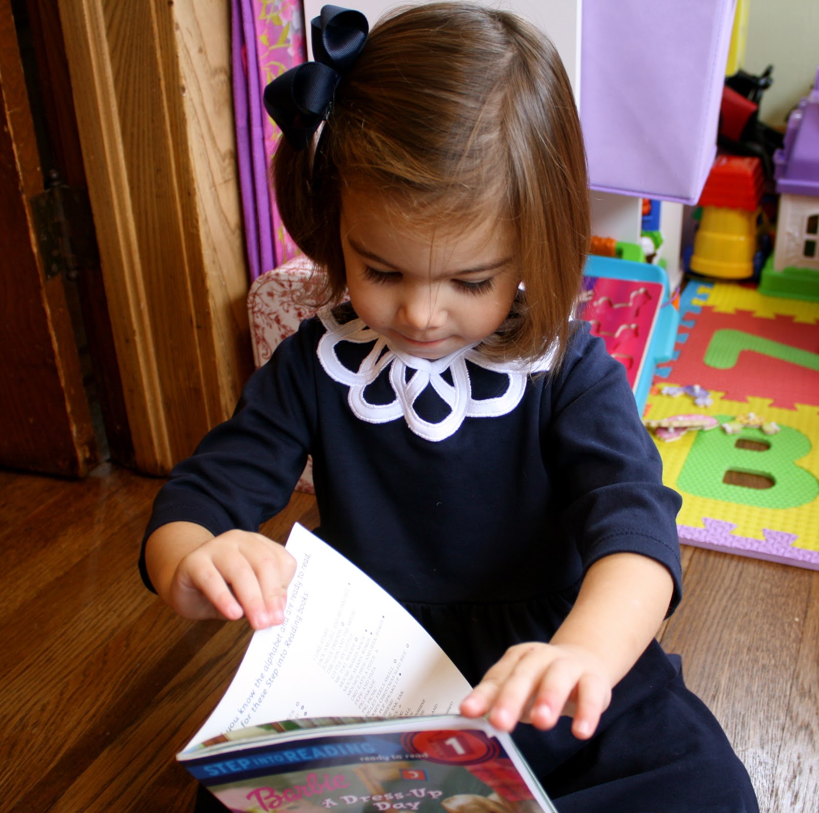 We are very thankful that a blogger reached out to us to help her sponsor a Hurricane Sandy family. You can read all about the family & ways you too can help out over at Irish Italian Blessings. This family lost everything in the storm. Julie & I, along with our children, helped to pick things out to send to their 7 year old daughter. Here is Maggie spending some time looking through her books for one to send.