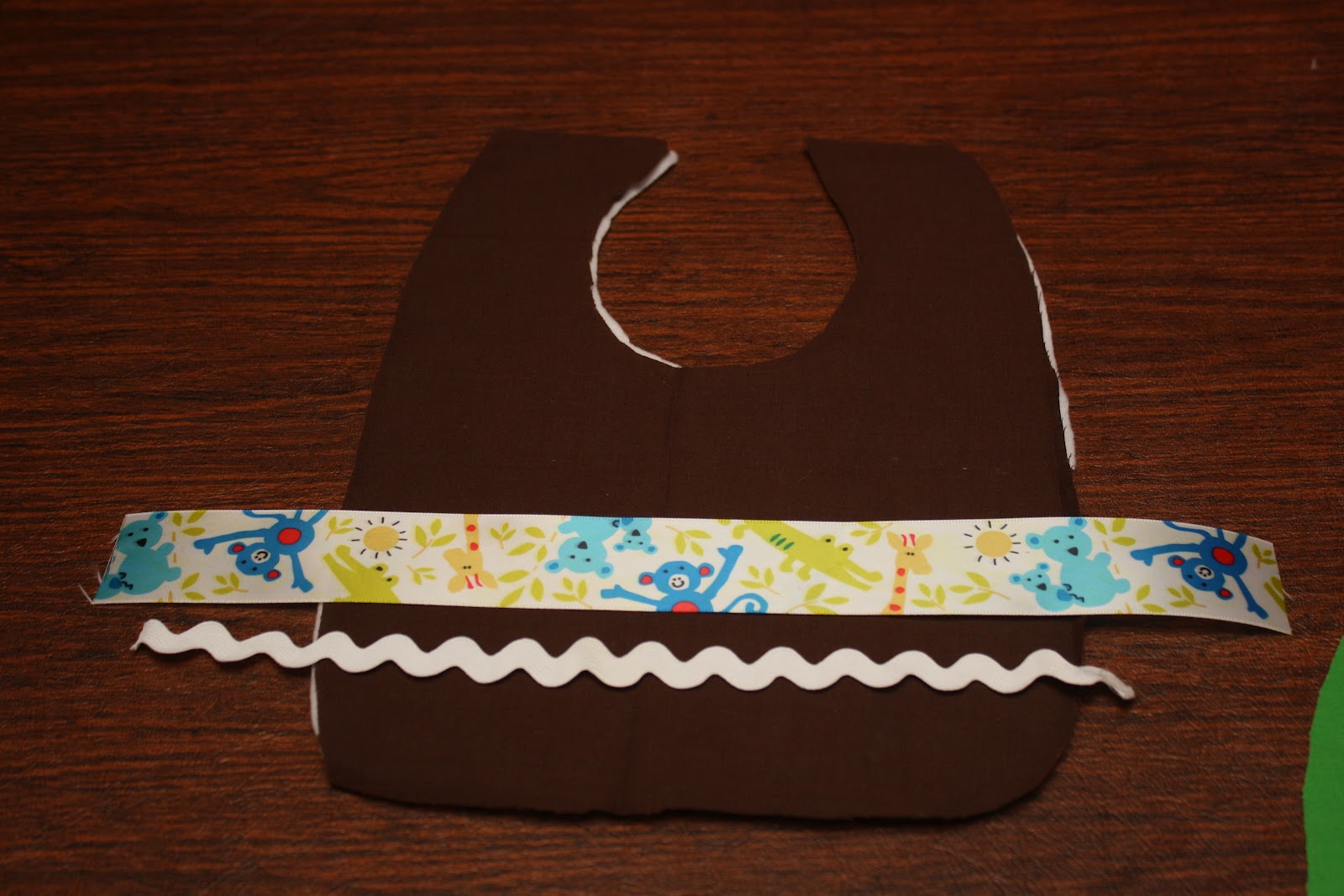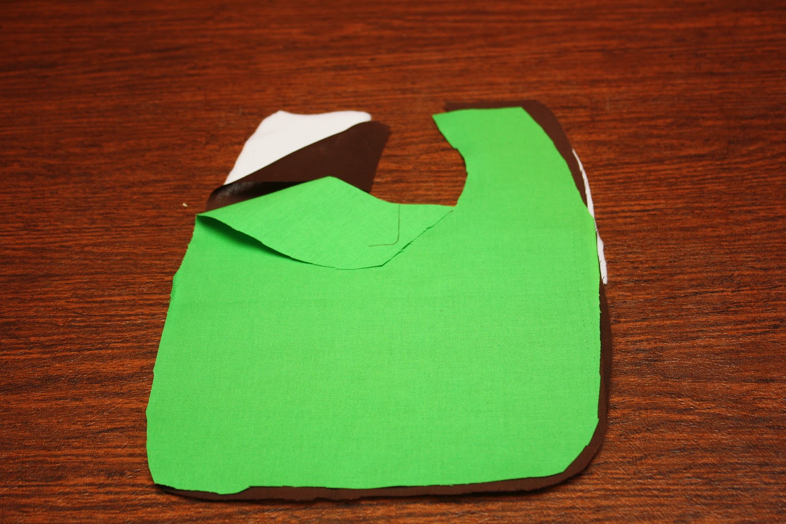 Pin the cut out onto each piece of fabric & cut out the shape of the bib.