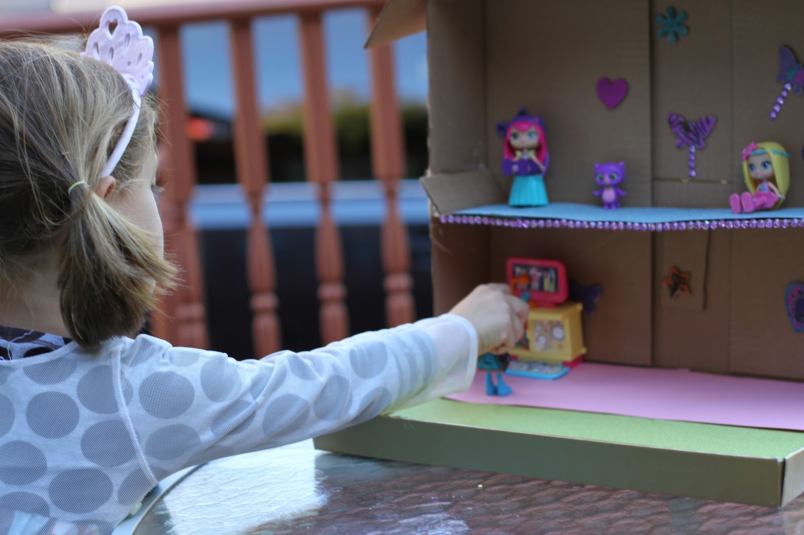 How To Make A Simple Dollhouse From A Cardboard Box & Fun with Little Charmers