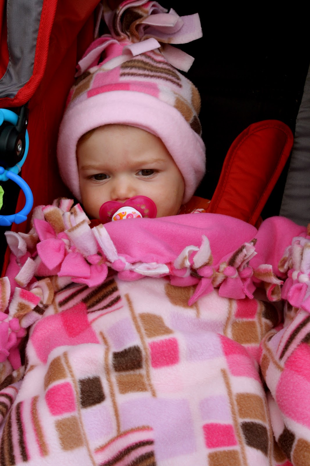I have had two “winter” babies and one of the things you need is something to help keep them warm in the stroller/car seat when you head out on those COLD winter days!!!!  A wonderful online seller, Baby Love Burp Cloths, shared with each of us a snuggler set, which includes a stroller blanket and a super soft hat for our little ones.  And once again, as you can see in the picture with my son Aiden, these can grow with you as baby gets older:)