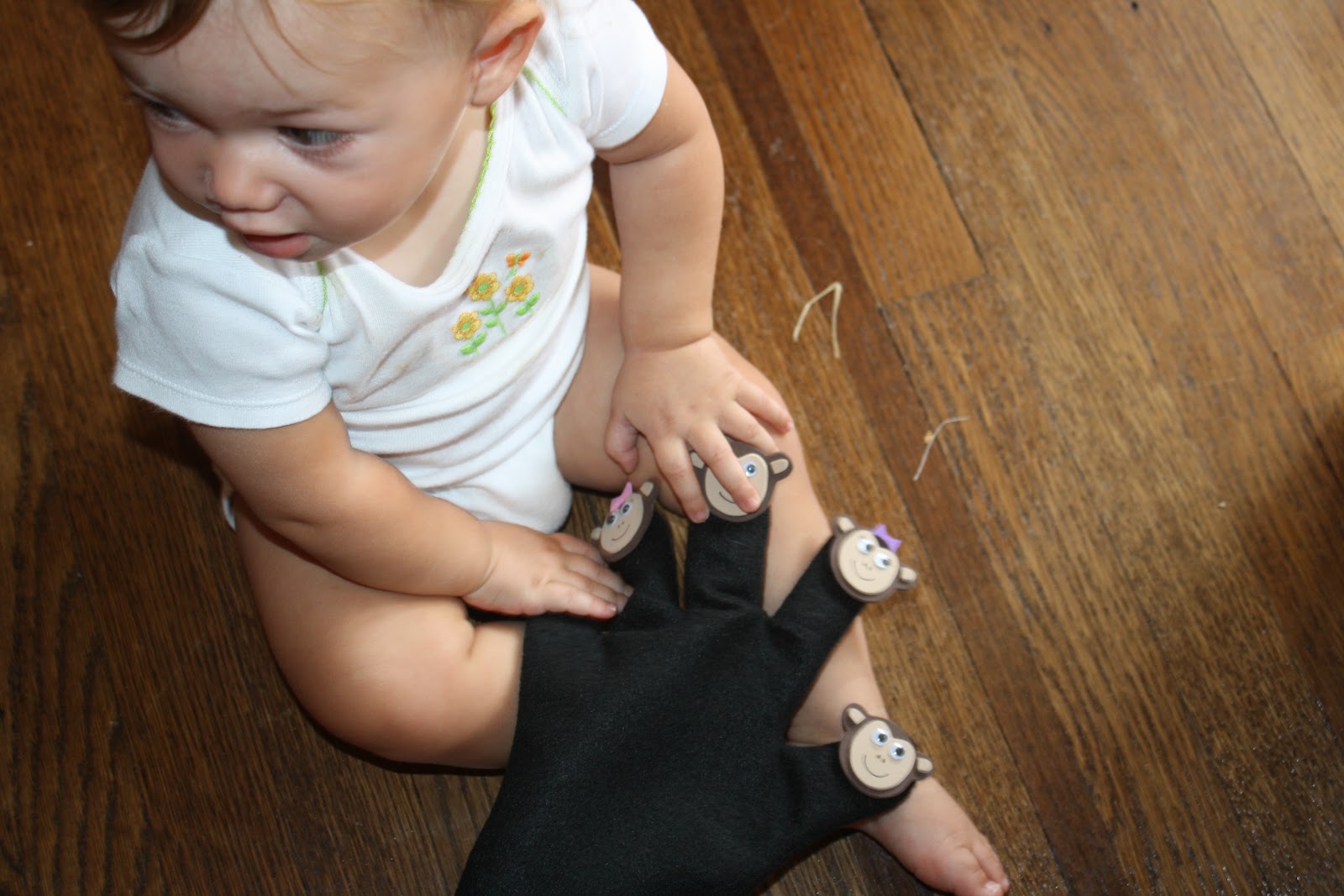 And check out the glove that Courtney used to read 5 Little Monkeys Jumping on a Bed with Maggie and Alex.  Her girls were so excited to make Courtney’s fingers jump up and down as the monkeys jump on the bed!