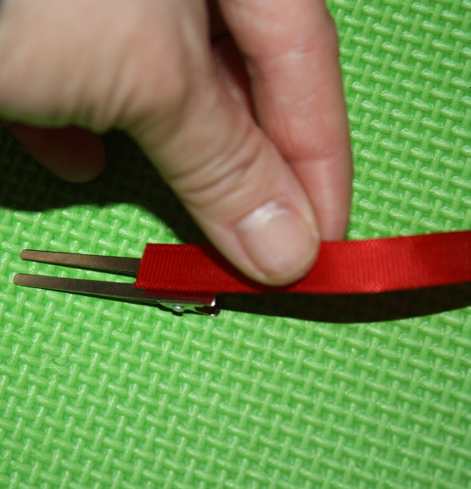 Once the alligator clip is covered in ribbon, just glue the felt piece on!