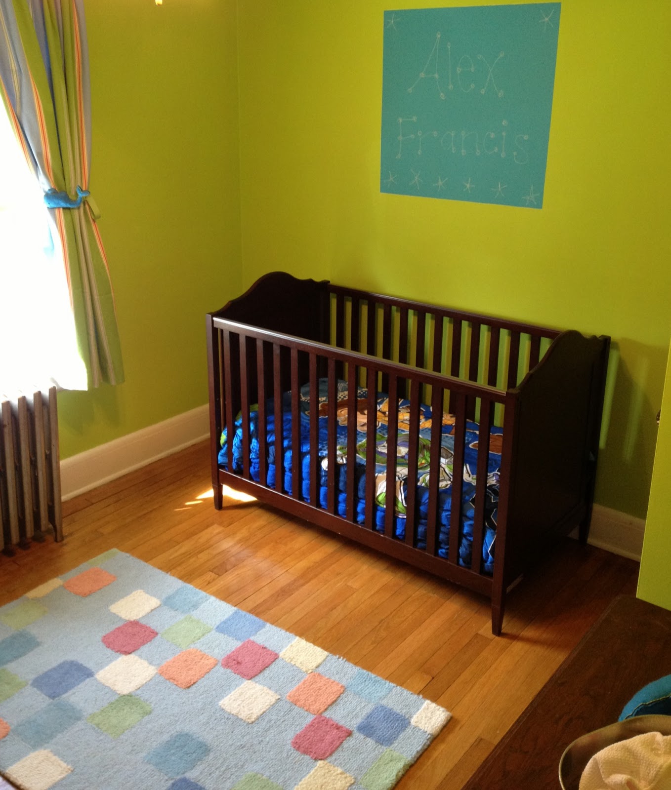 We had so much fun painting Alex’s room. We had even more fun showing the room to our friends at our Toy Story Pajama Party! I was so impressed with the colors & quality of the Disney Glidden paints & our guests were too. My favorite part of Alex’s room is the chalkboard squares we made using the Great Slate finish. None of the Moms I’ve shown this to knew you could get colored chalkboard paint. One mom suggested other things I could write in the squares for Alex like “Happy Birthday” or “Congratulations” when she reaches certain milestones.