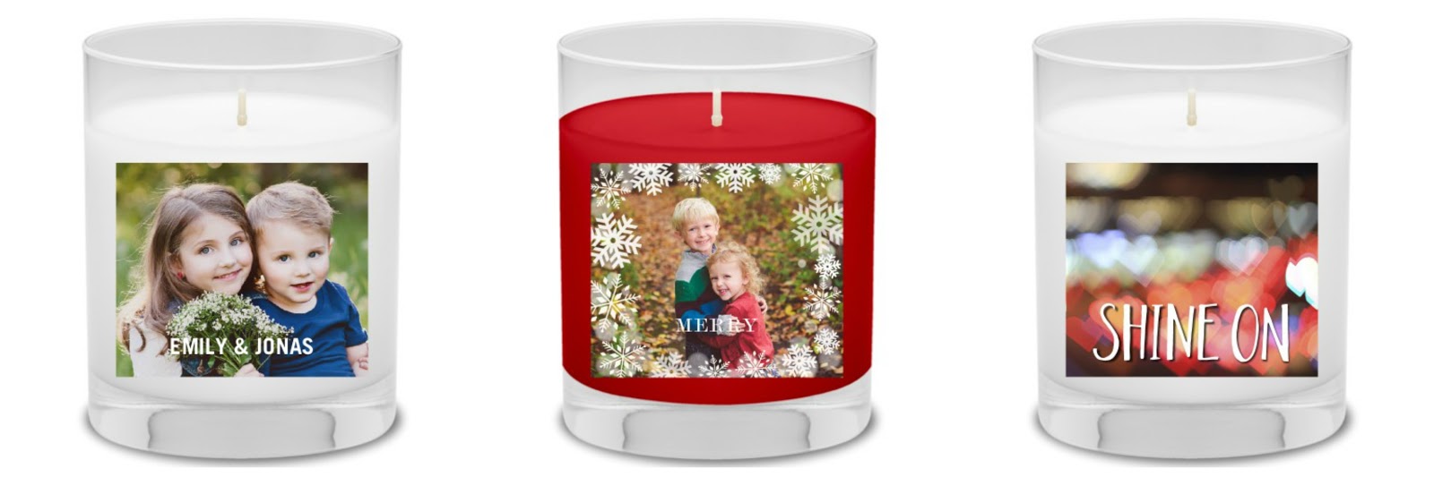 I love the Shutterfly candles. They are such pretty, nicely scented candles that offer options to just add a subtle photo along with a design. There are holiday options as well as plenty of options to match rooms in your home.