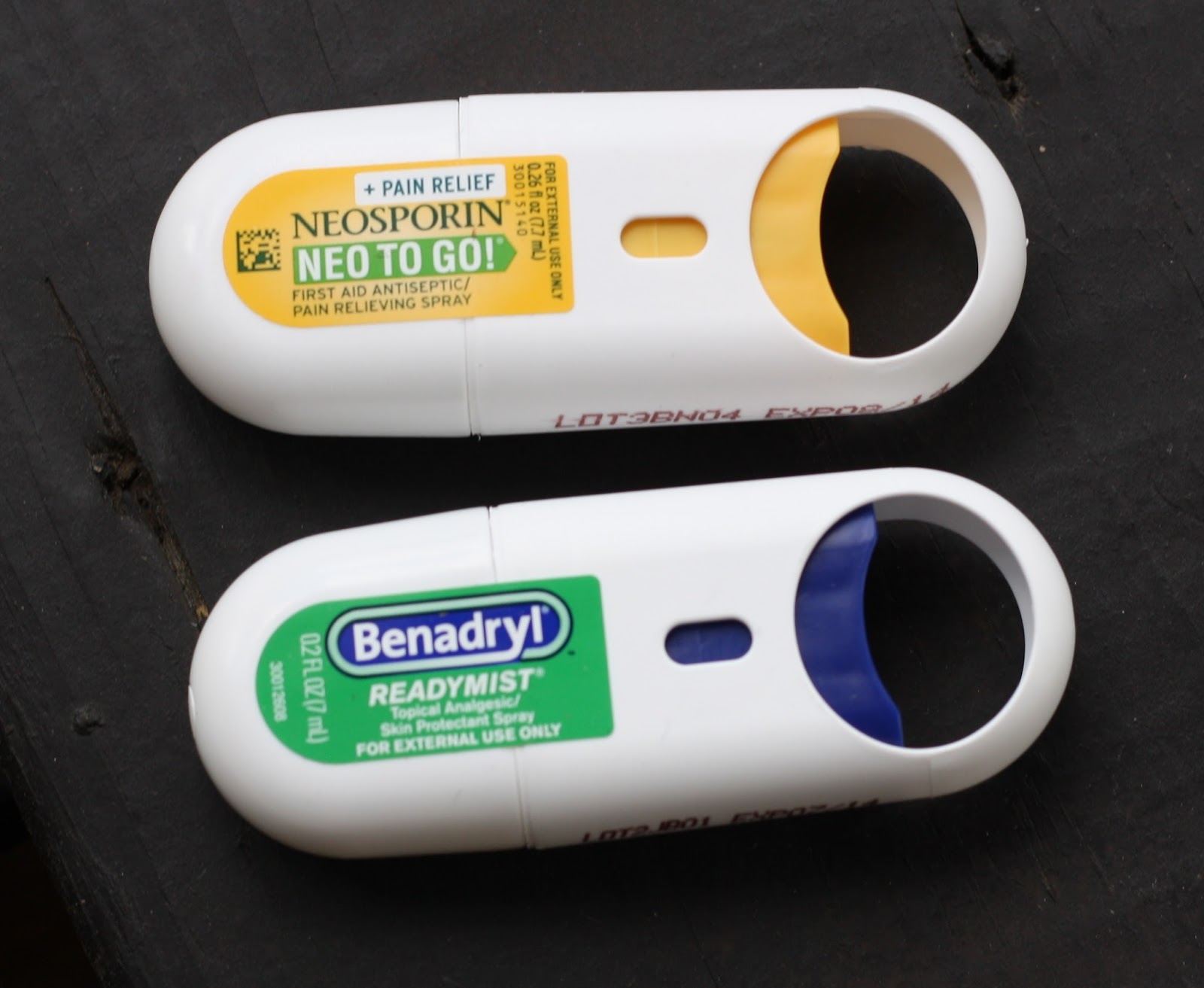 I LOVE those little one finger spray Neosporin & Benydryl on the go thingies…I love how easy they are to throw in any bag..