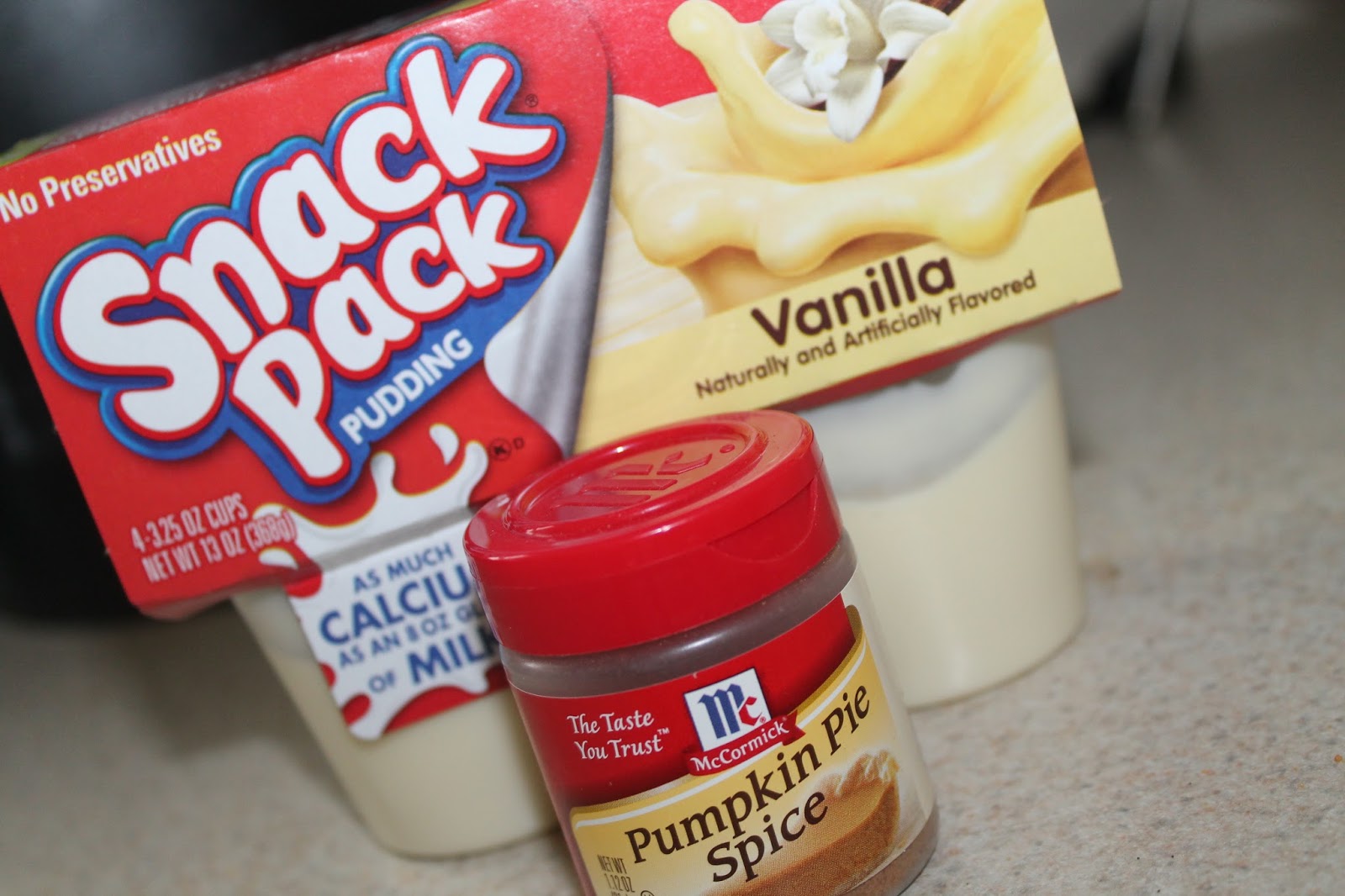 Put the pudding into a bowl.  Add a small amount of pumpkin pie spice into the bowl until you reach the desired taste (it doesn’t take much!).  Add red and yellow food coloring to make “pumpkin” orange.  Paint!