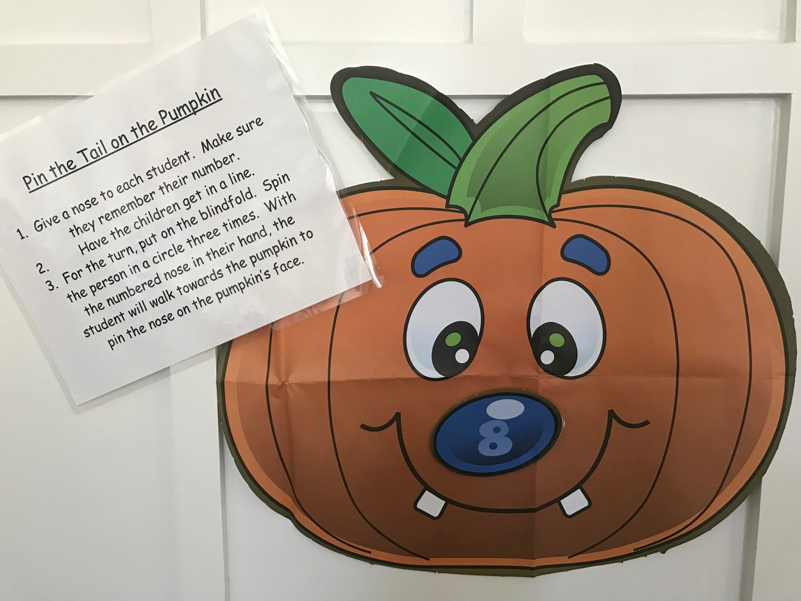 This is a spin-off from the classic Pin the Tail on the Donkey.  The kids will take turns getting blindfolded and try to put their nose on to the pumpkin in the game, Pin the Tail on the Pumpkin.