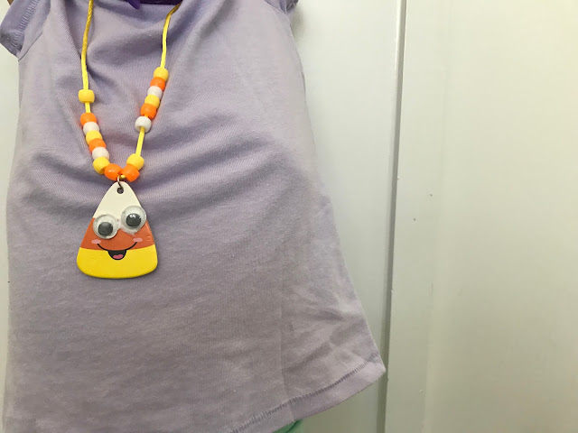 This super cute craft also comes in a kit of twelve from Oriental Trading. The kids can add the google eyes with glue & string their candy corn and the included beads onto the yarn.  My kids always love creating things that they can wear so I know this will be a hit with the class!