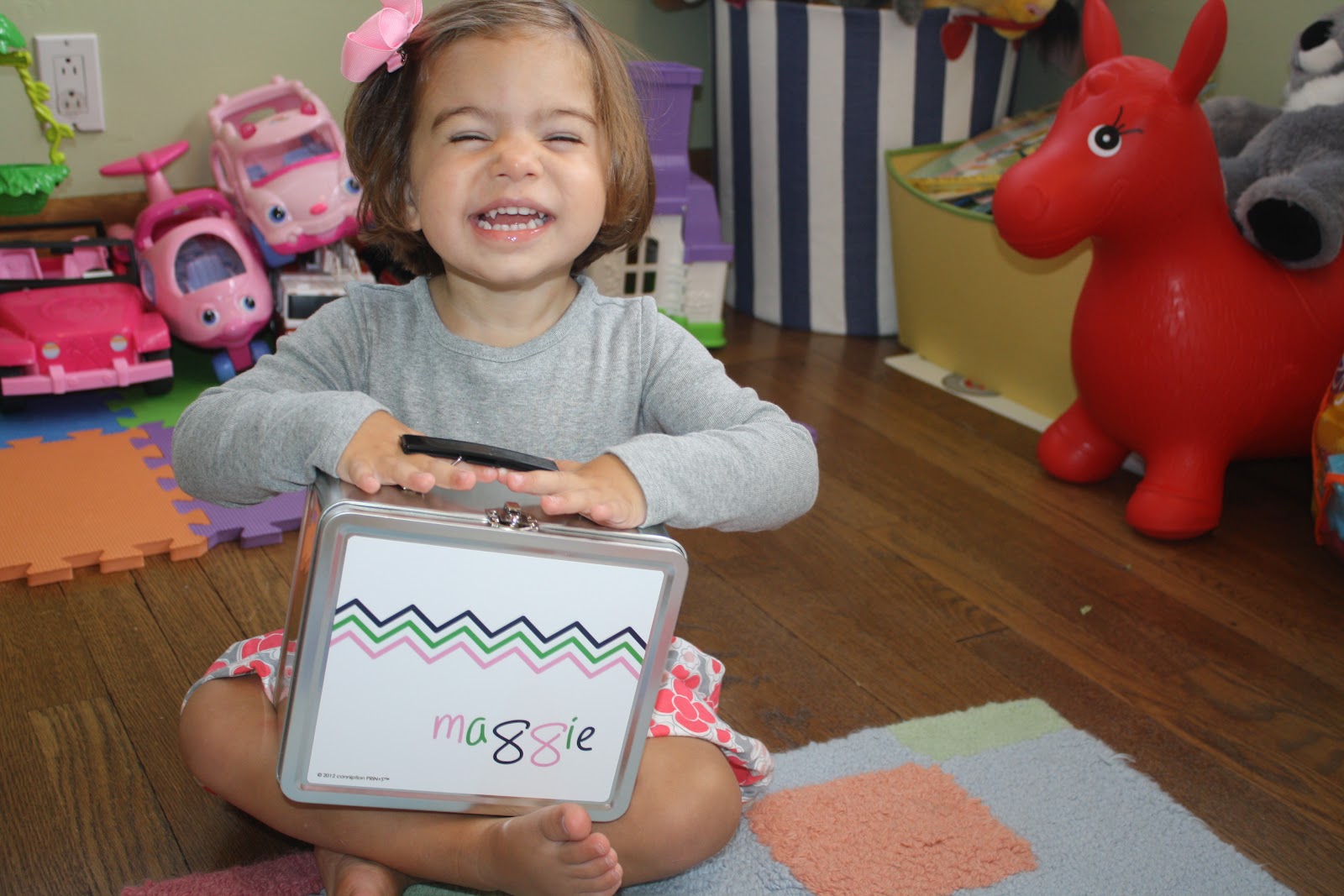 Since school hasn’t started yet here in the Northeast, our lunchbox has already been put to use as a little treasure box to carry some beloved toys around.  It has even gone to bed with my child several times:)  And if your child isn’t old enough to go to school yet, I still highly recommend purchasing a lunchbox!  We have used our lunchbox for picnics at the park, snacks at play dates, and lunches around town.  My little one loves to take his with us on SO many outings!  Do you want to see two happy faces who are SO excited about their new lunch boxes?!?!