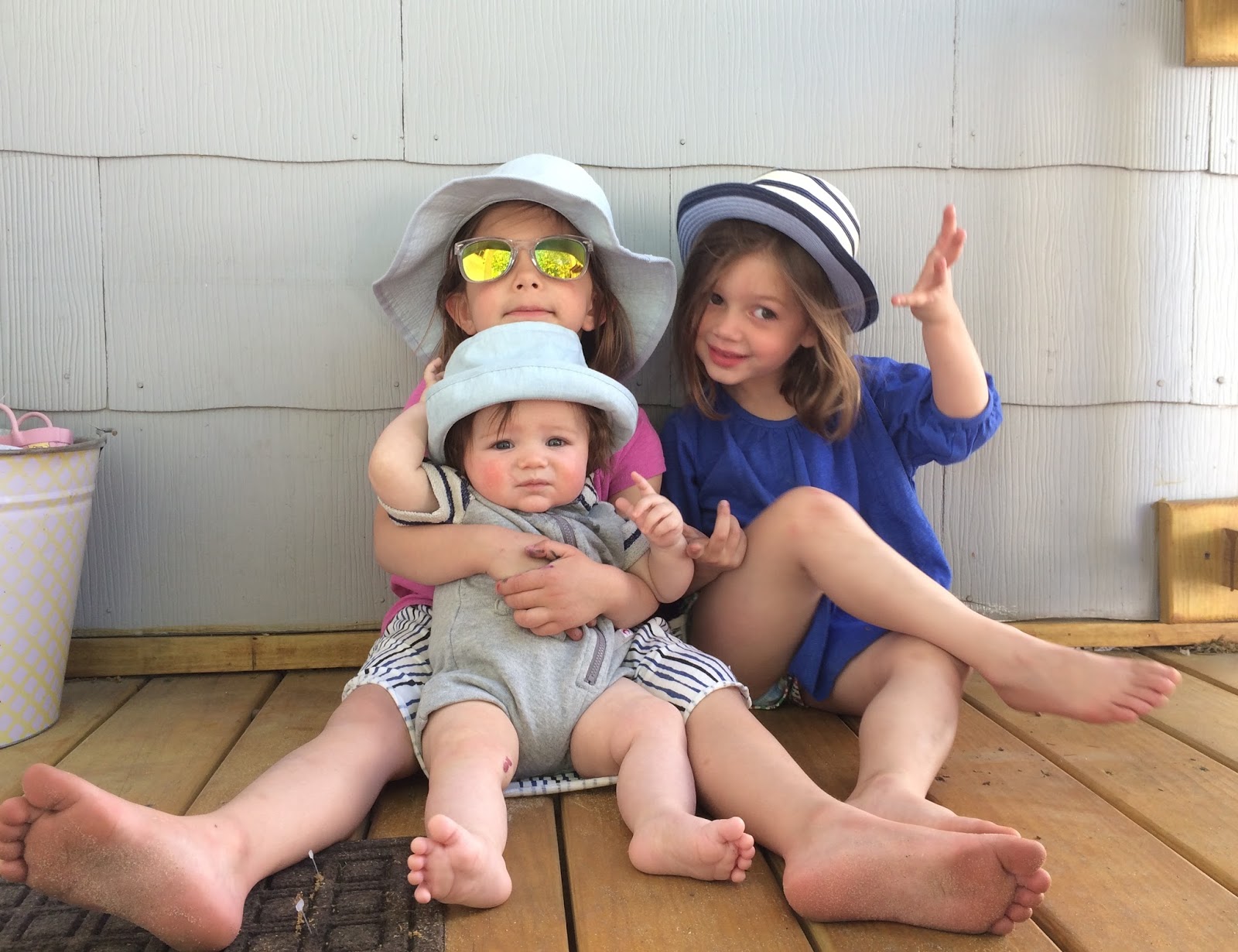 My kids play hard in their summer clothes. In the summer the kids are outside all the time: running, climbing, jumping, digging in dirt, riding bikes, etc. Even the baby is active outside now, crawling everywhere he can.