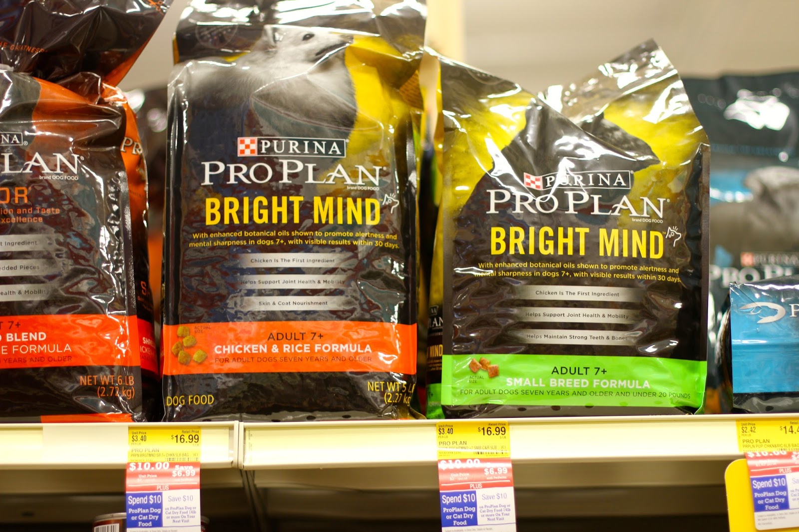 We found the aisle with the Purina ProPlan Bright Mind food and chose the Small Breed 16b bag to start. We were looking forward to trying the food out and seeing if Jersey liked it. Purina ProPlan Bright Mind is specially formulated to increase cognitive awareness in adult dog (age 7+). We want to take the best care we can of Jersey as she ages.