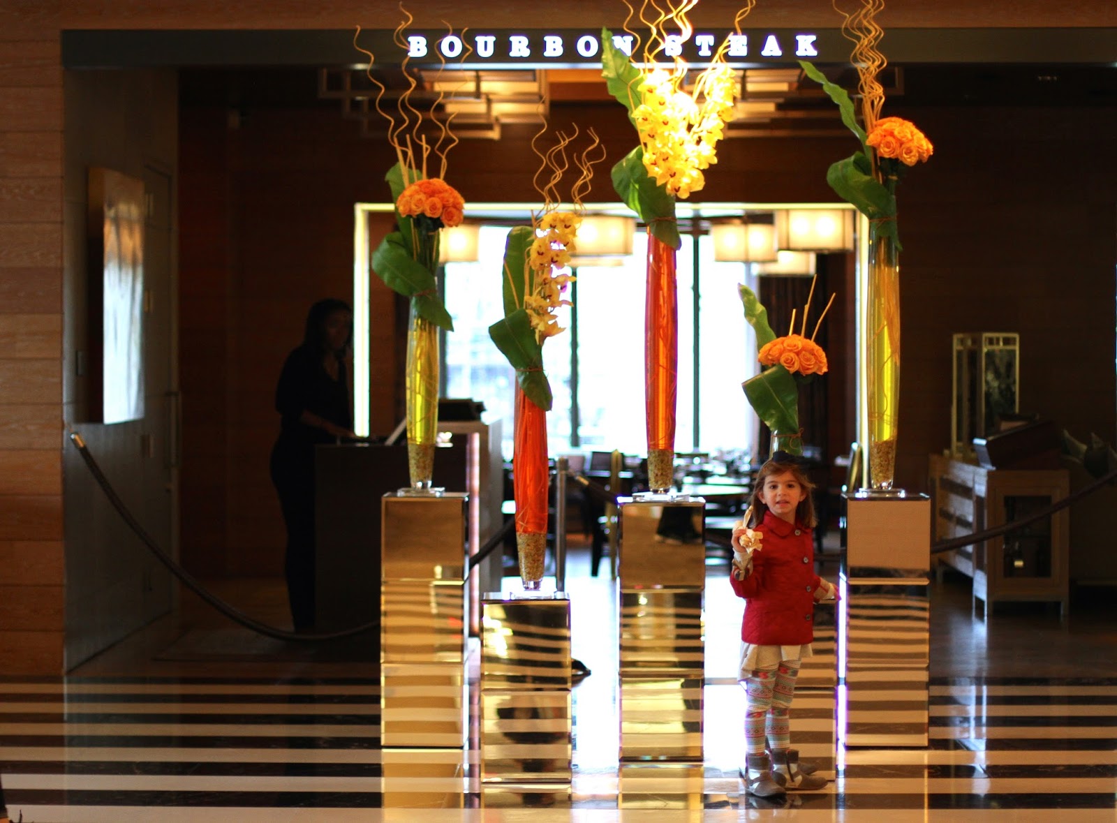 In addition to our in-room breakfast, we enjoyed dinner at the hotel at their steakhouse: Bourbon Steak. The food was delicious and they had the best kids menu we’ve seen. The kids enjoyed everything from the sampling of french fries to start to the “chocolate-y” desserts to finish. The staff was welcoming and cheerful and did all they could to make us feel comfortable dinning with 3 little ones. In addition to the kids being well fed and content, Tom and I enjoyed the steak and wine.