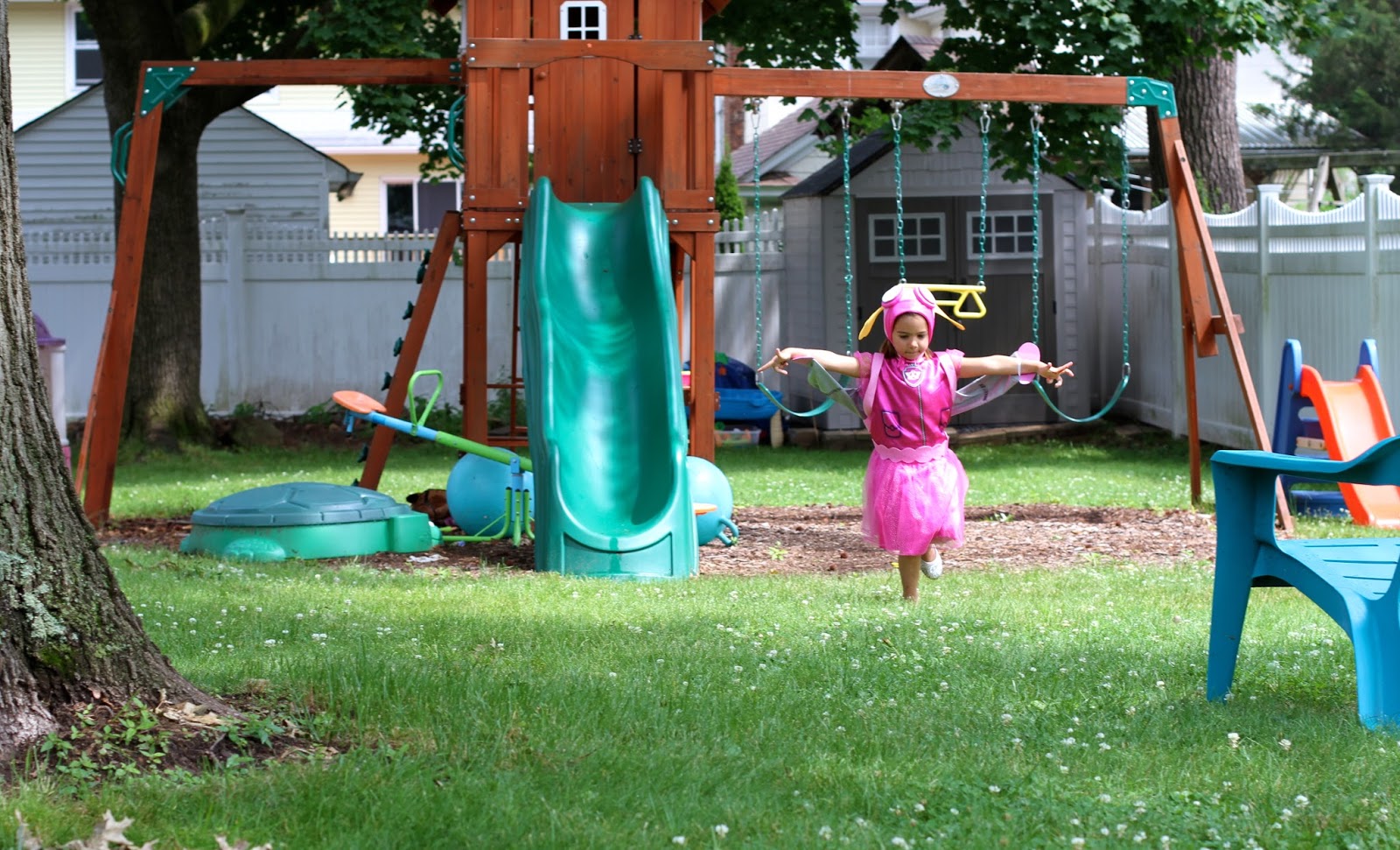 Her favorite show is Paw Patrol and she loves all of the characters. She was beyond excited when she saw this Skye costume from Costume Express. Lately, she lives in it. She loves that she has “real dog ears” and runs around the yard helping to rescue Queen Alex. I love watching my girls dress up, play and pretend each day. Their imaginations are amazing.