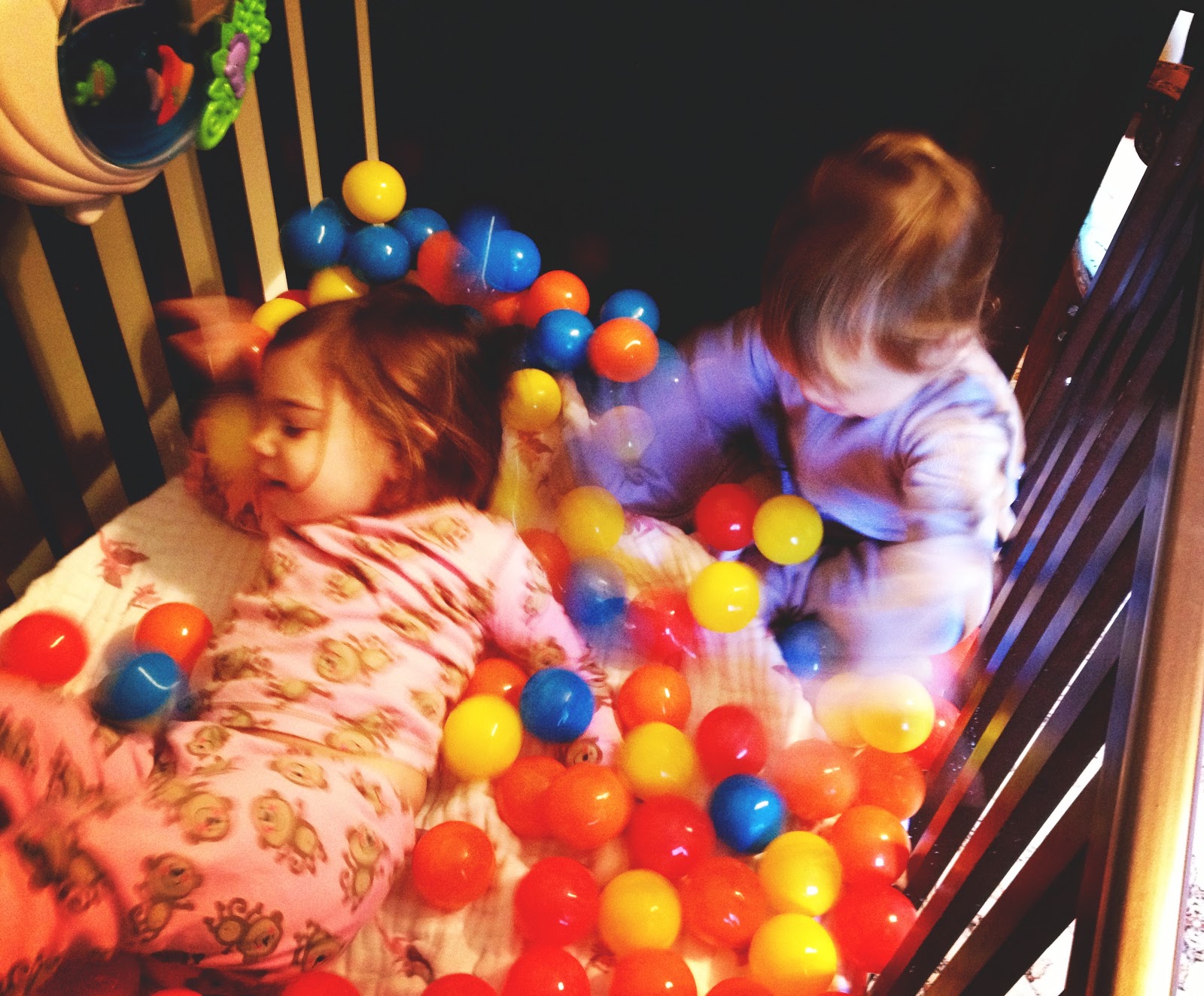 Disclaimer: I’m sure this is against all crib safety codes, so please be careful & remove all balls before they go to sleep.