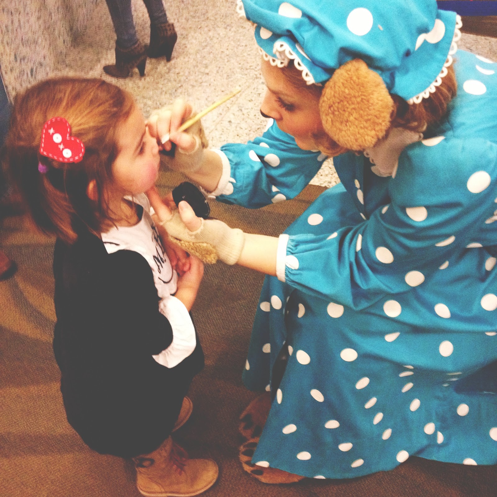 After the show, the kids had a chance to meet The Berenstain Bears. Moma Bear was painting “bear noses” on children as they came out of the show & my two little cubs were eager to get theirs!