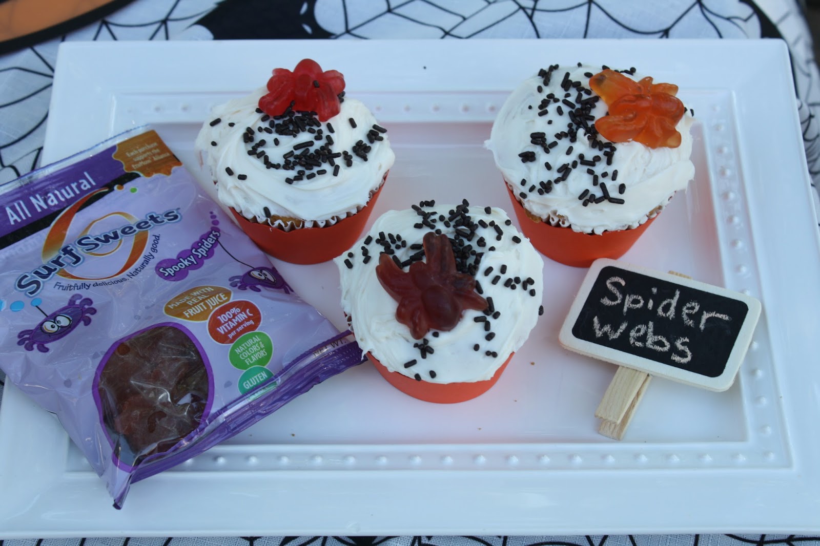 Iced cupcakes // chocolate sprinkles // Surf Sweets Gummy Spiders
