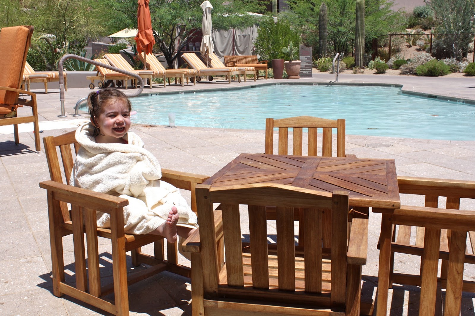 1. The Wading Pool: The Four Seasons Scottsdale has a few pools to enjoy. We spent most of our time at the children’s wading pool. This pool was perfect for Maggie & Alex. They could walk around the entire pool safely. They spend the days splashing & playing with pool toys. Along with a kid sized pool, there were kid sized lounge chairs & tables too!