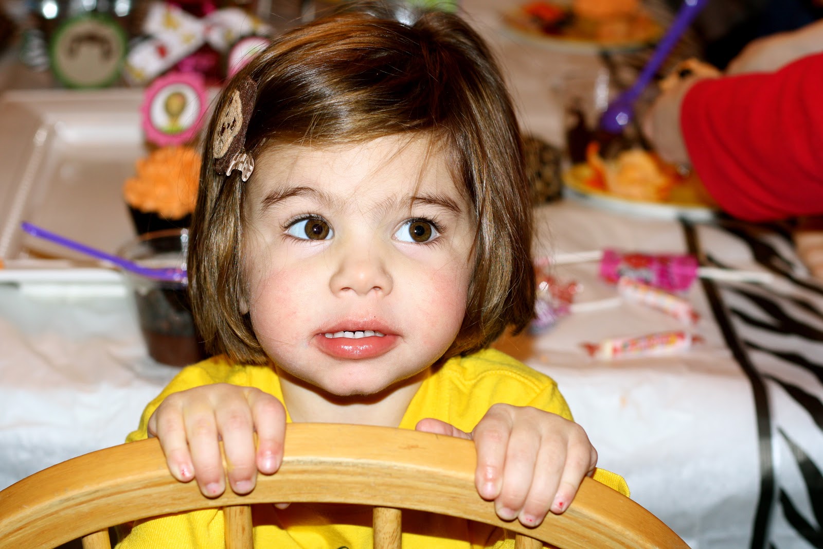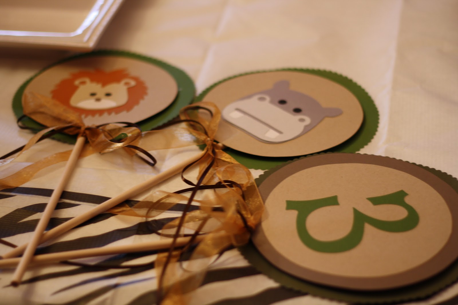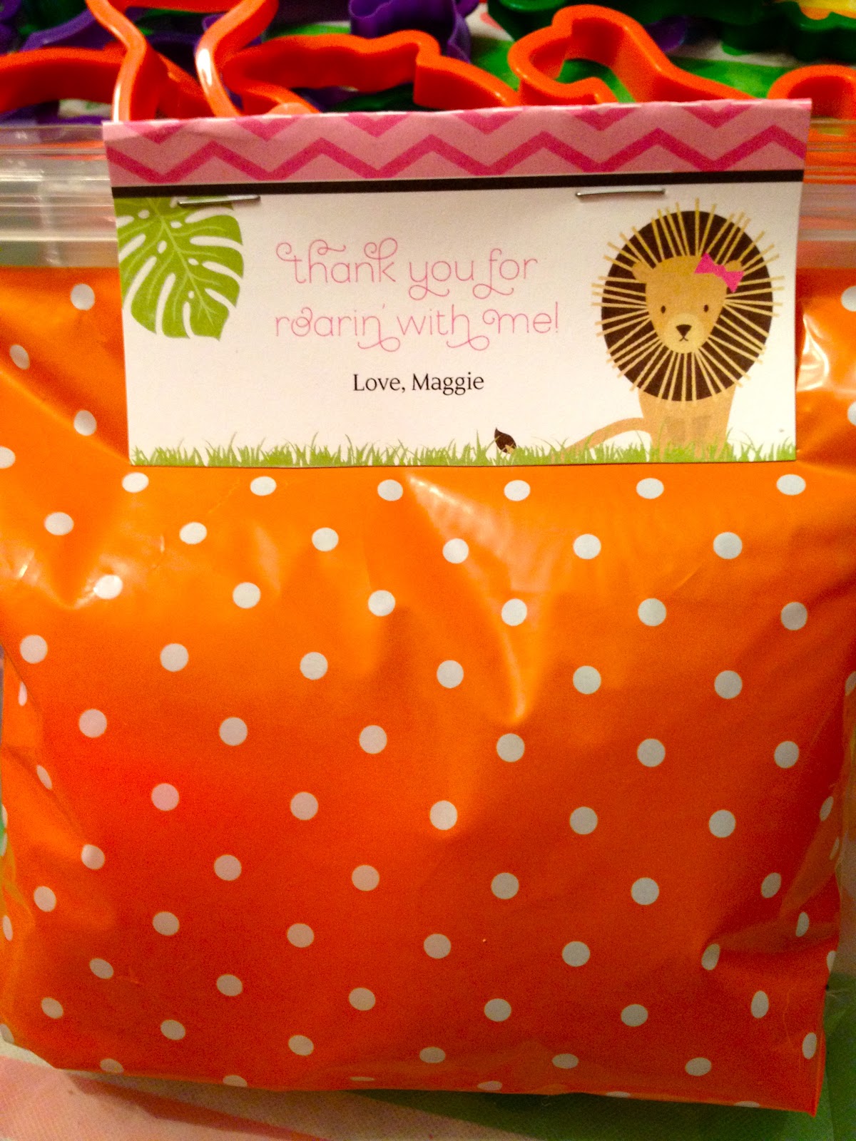 I thought it would be fun to have safari animal clips in Maggie’s favor bags. She has a lion clip of her own, that she wears every day, so when she saw these, she thought they were awesome! They clips are from Bella B. Studio (giveaway below). This shop has a great assortment of hair accessories & the shop owner was a delight to work with on making a set of animals for the party!